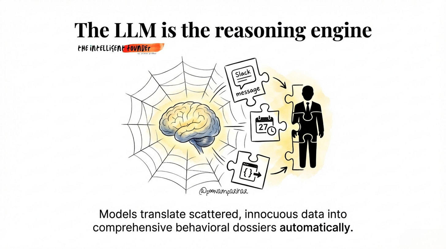 You needed human analysts to read transcripts, review camera footage, cross-reference databases. Scale required headcount. That constraint is gone. A single LLM can now ingest movement data, communications metadata, financial transactions, and social media behavior, and synthesize it into a comprehensive behavioral profile of any person, automatically, at population scale.