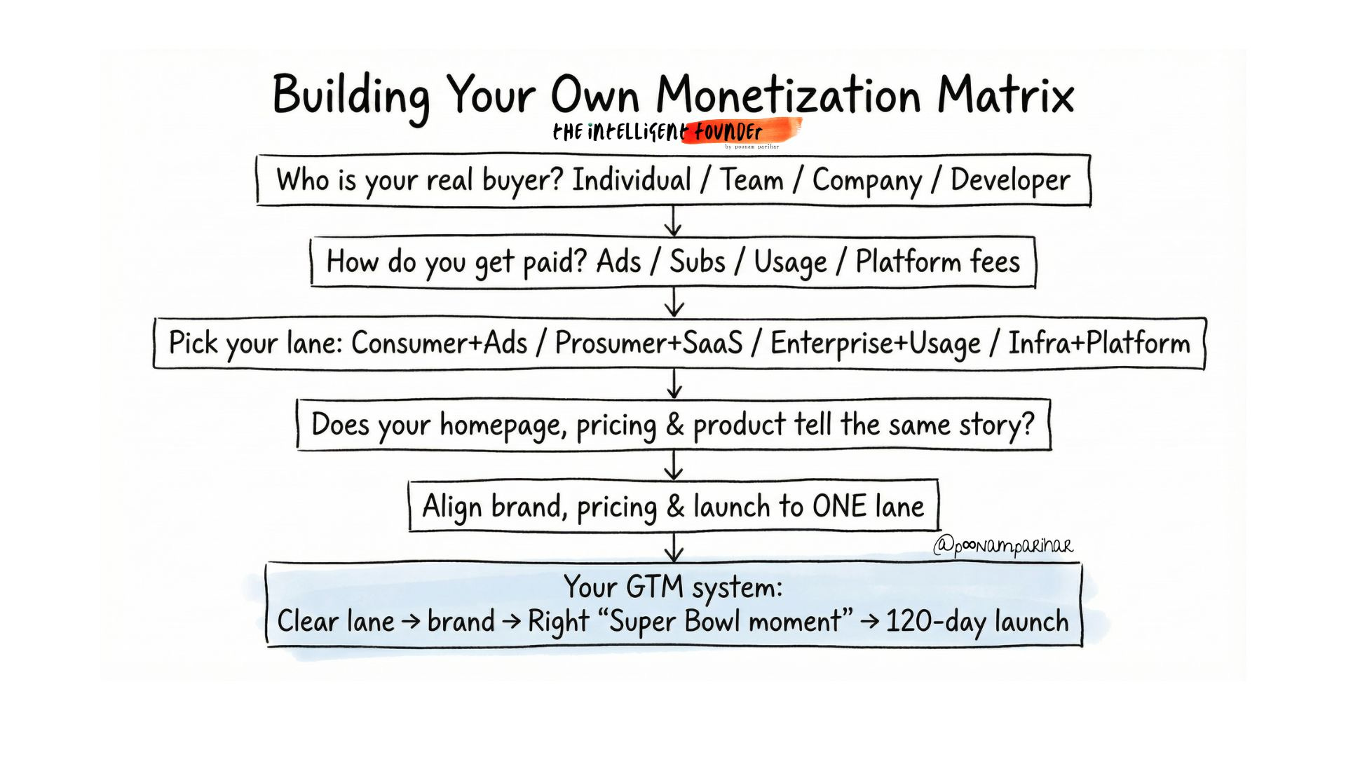 pick your square on the matrix first, be it consumer‑ads, prosumer‑SaaS, enterprise‑usage, or infra‑platform and then design everything else (brand, launch, pricing) to make that choice obvious.